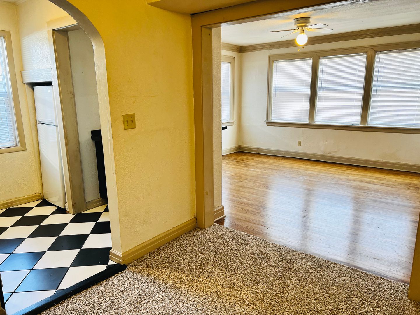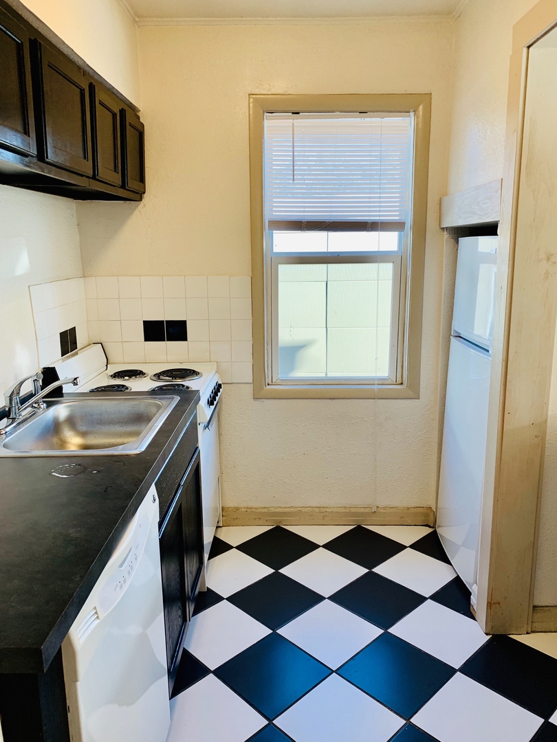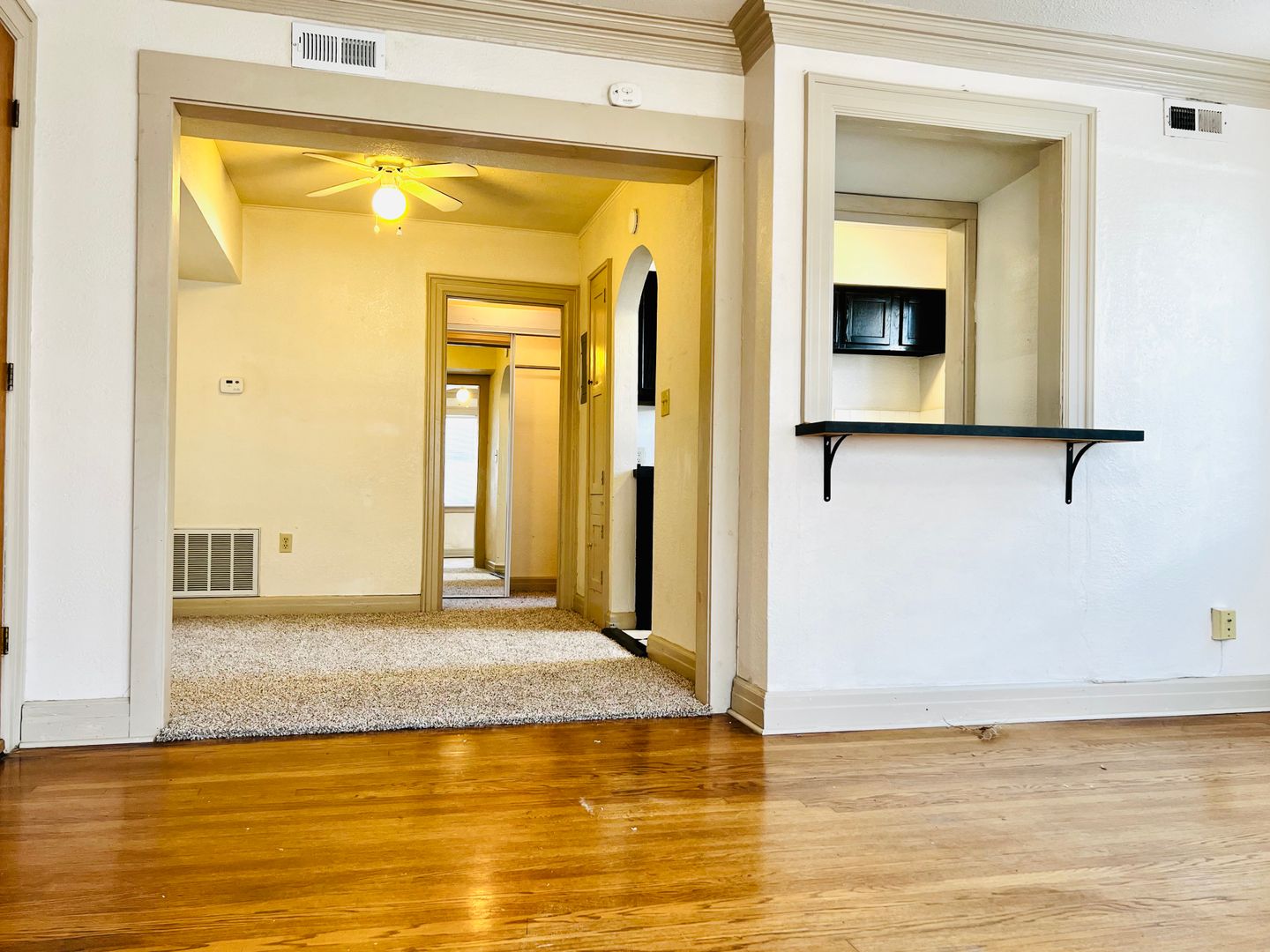 This second floor unit is 450 sq ft and has tons of natural light.  The home features an open floor plan with hardwood floors in main living area, a kitchen with all appliances included, on-site parking space and communal washer/dryer located on-site.  Close to  Goodholm Park, the Paseo Arts and Uptown districts with great shopping and restaurants.