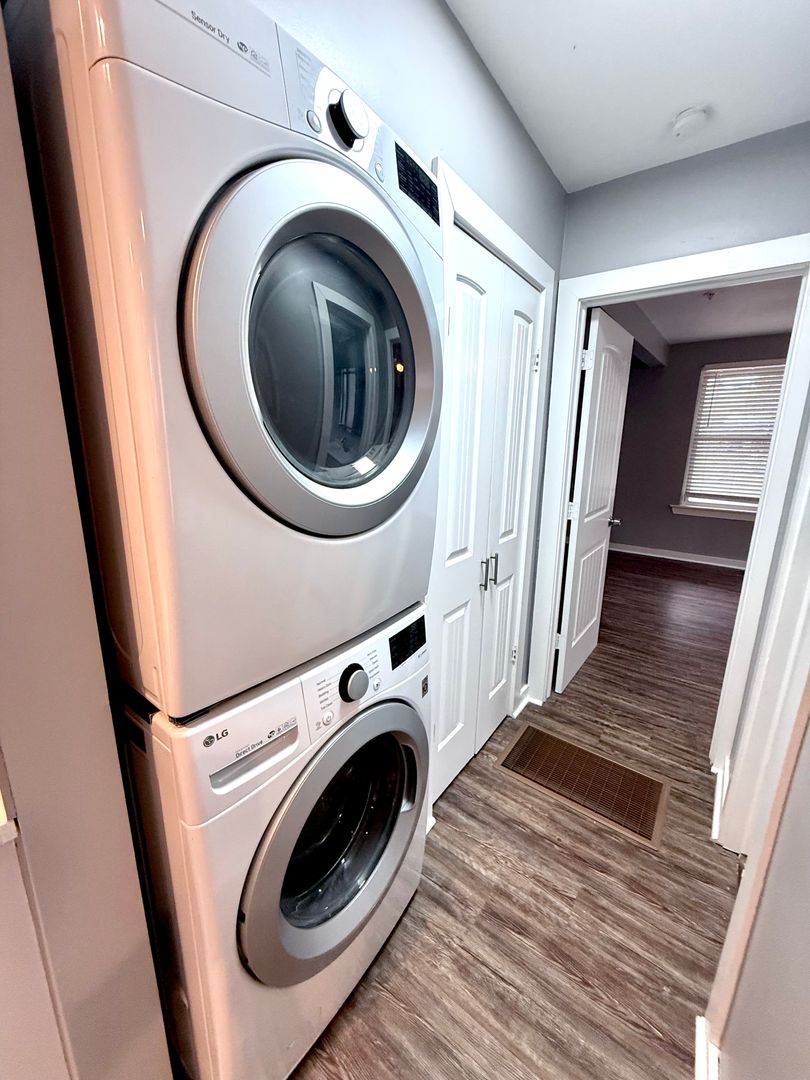 Welcome to The Shafer Apartments!!  This wonderful Historic building has been completely updated and features spacious & open living areas with modern finishes, pergo flooring, beautiful bathroom with subway tile & custom cabinetry and a kitchen with all appliances provided along with quartz counter-tops, subway-tile backsplashes.  This unit is an downstairs apartment and also includes stackable washer/ dryer, plenty of storage space and covered patio.  Conveniently located in Central Park, close to the Paseo Arts & Uptown Districts with its wonderful restaurants, neighborhood bars, shopping, and easy access to I-235.